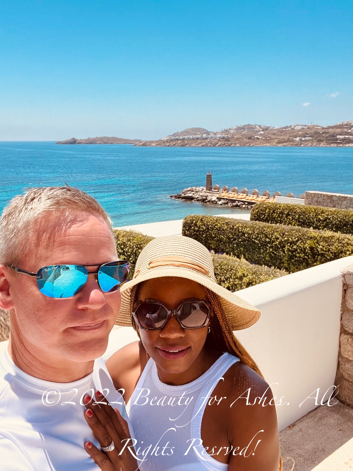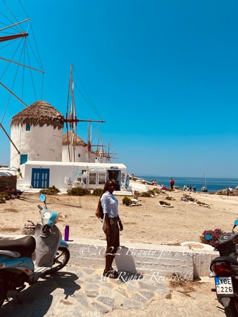 Aegean also allowed my husband to use his US Driver’s License to board our flight to Mykonos and later to Santorini and back to Athens. We praise God for that! Mykonos turned out to be so much fun. We were initially told that it is known as a hippie place for only party goers and all kinds of other things. We were pleasantly surprised to find that families and everyone can have fun there. We stayed at one of the most beautiful resorts I’ve ever seen, the Santa Marina, a Luxury Collection Hotel, part of Marriott. The view is breathtaking, the hotel staff were friendly, and they treated us so well.