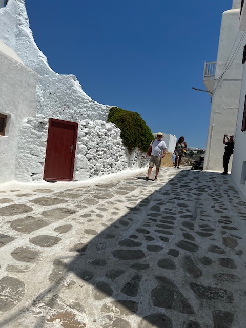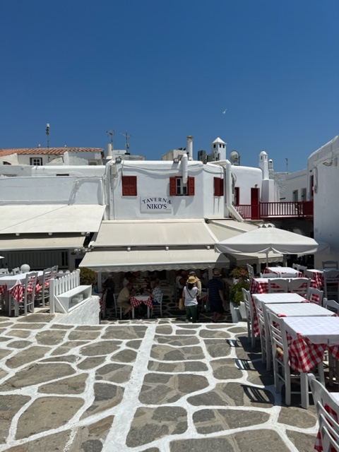 We also visited the Mykonos town, the famous Matoyianni Street, the Mykonos Windmills, the Little Venice, and the shopping capital of the island. Its cubic white washed houses and blue doors and windows in narrow little streets standing like a corn-maze are absolutely beautiful. We had lunch there and later retired to our hotel room since neither my hubby or I are party people 😄 we could have been happy at this hotel alone.