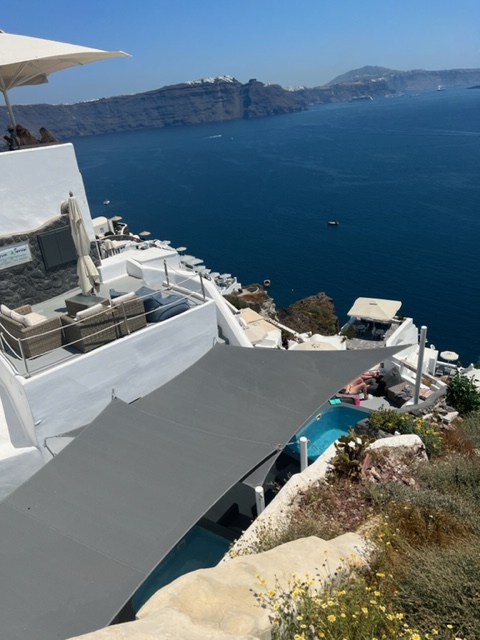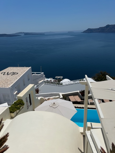 The last leg of our tour was Santorini before returning to Athens. It was great to see what the fuss is all about 🤩 Flying Aegean from Mykonos to Santorini meant that we’d have had to connect in Athens, which would make the trip even longer. Therefore, we opted for the island hopping vessel, a SeaJet fleet which was impressive. The trip was about 3 hours including couple of quick stops on the way. Food and Wi-Fi is provided onboard for a fee. The only hard part was disembarking as a large group; it seemed like the survival of the fittest 😂 In Santorini, we chose to stay south of the island at another Marriott hotel in Megalochori, a Luxury Collection Resort.