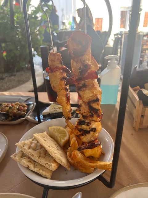 While I have the highest status with Marriott Bonvoy as an Ambassador Elite, this doesn’t always translate to a great experience. This trip turned out to be one of our most favorites of all times, and this Mykonos Hotel made it to our top three stays, along with our honeymoon at the JW Marriott Phu Quoc Emerald Bay Resort, Vietnam and now the Ritz Carlton Aruba. We had a spa treatment there, good food and beautiful beach. One day we walked to the Greek restaurant called Kostantis and their food was authentic, absolutely delicious.