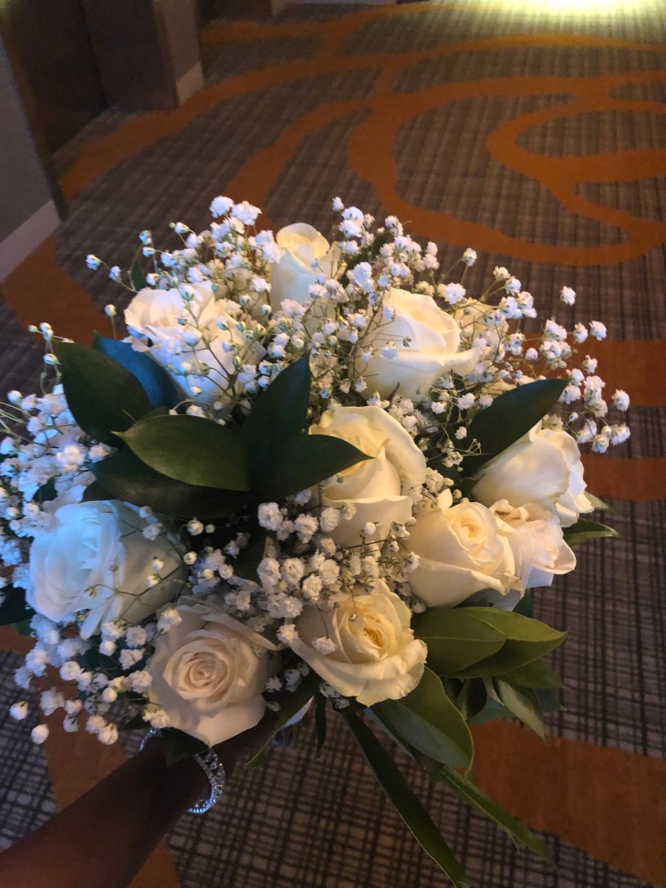 Our wedding theme was a shade of green and white (flowers & decor). The Rochester’s Wegmans Floral Department made me a beautiful bouquet that lasted for 3+ weeks. I wanted a natural, earthy look; lots of green leaves surrounding white roses. They did exactly what I had in mind and I was very pleased. Our ceremony arch was top notch. Thanks to my mom’s friend, Anne, who designed it for us, on a very short notice. One thing I realized with my family and friends in Rochester is, don’t ask them for help 💗. Here is why: they will not only do it, but also pay for it. The same happened when we asked my dad’s sister Linda to pick up flowers for us. True story. I know the best of people.