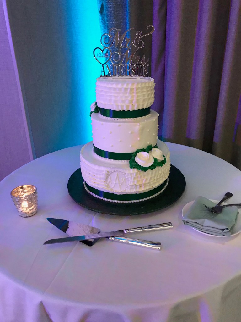 Our wedding theme was a shade of green and white (flowers & decor). The Rochester’s Wegmans Floral Department made me a beautiful bouquet that lasted for 3+ weeks. I wanted a natural, earthy look; lots of green leaves surrounding white roses. They did exactly what I had in mind and I was very pleased. Our ceremony arch was top notch. Thanks to my mom’s friend, Anne, who designed it for us, on a very short notice. One thing I realized with my family and friends in Rochester is, don’t ask them for help 💗. Here is why: they will not only do it, but also pay for it. The same happened when we asked my dad’s sister Linda to pick up flowers for us. True story. I know the best of people.